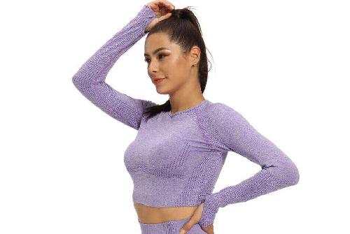 Material of Purple yoga sport sweatshirt: nylon + spandex